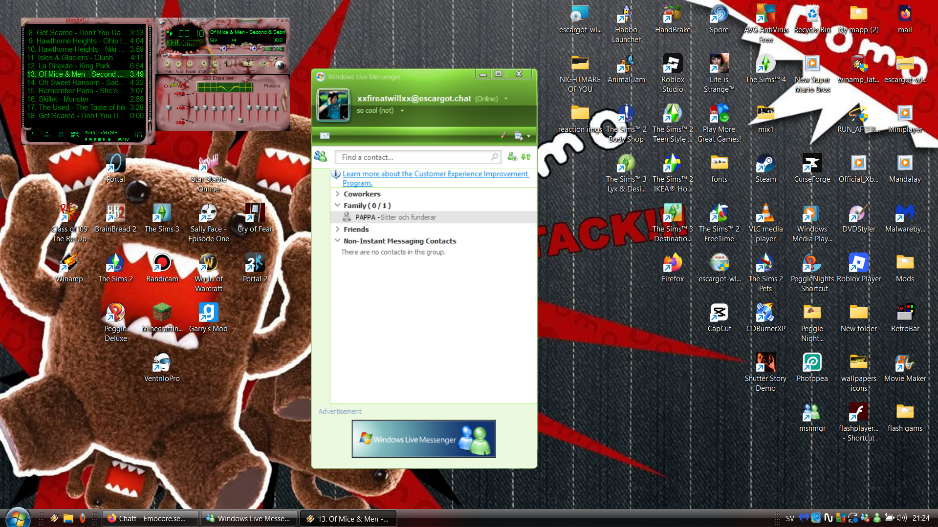 har FINALYYYYYY fått msn att funka igen.. det gick sönder när jag installerade movie maker eftersom det ingår 2012msn i live essentials