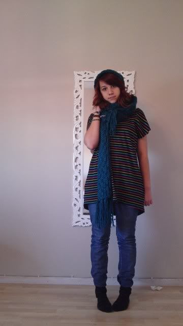 Edit: hade klasströja (ni vet sån man köper i nian), jordgubbsmössa ( ni vet sån man hade när man var liten), kängor och halsduk när jag var ute förut också.