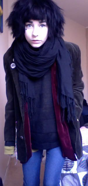 enorm tröja, halsduk och jeans är det enda man orkar ha på sig när man är sjuk