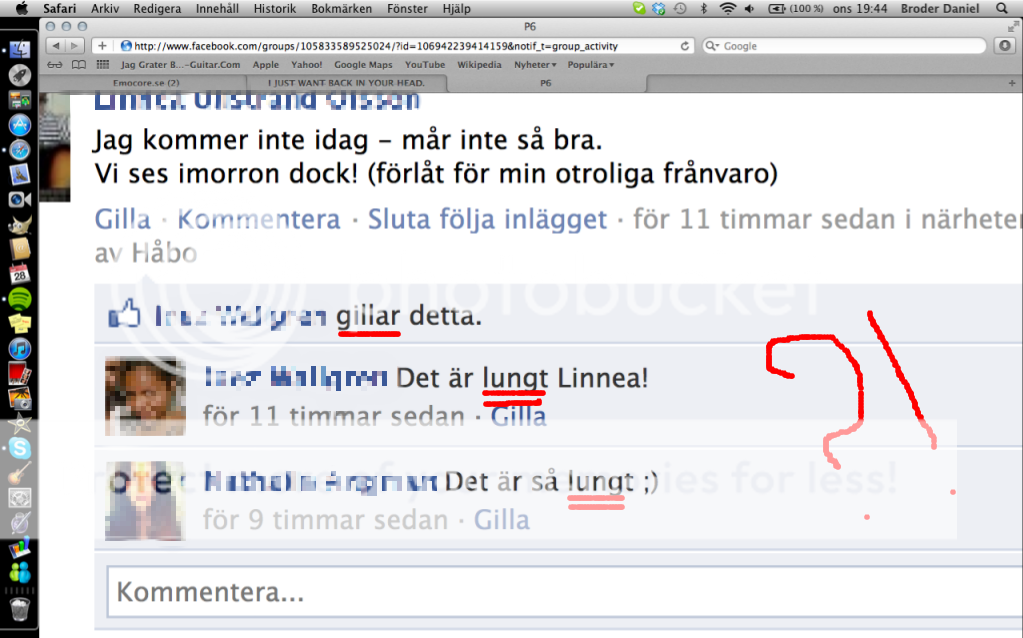 "Alla ni som tycker jag värkar despirat tryck på gilla knapen hehe =)"