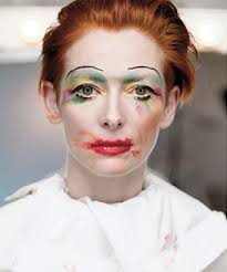 concealer, foundation, puder, ögonskugga, kajal, mascara och ögonbrynspenna händer väl att läpparna blir röda också!
