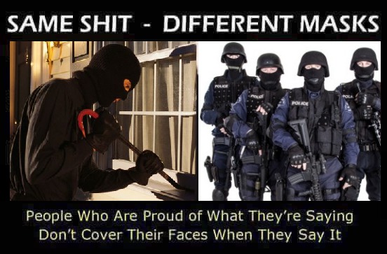 Fast nu är det så att dom har för ansiktsskyddande orsaker, inte för identitetsskyddande orsaker? Varför fan har dom hjälm och skyddsvest på sig tro?