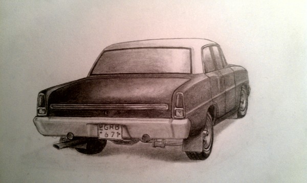 Dålig mobilbild som vanligt, scannern fungerar inte. Detta är min polares Chevy Nova, anledningen till att jag tecknade den är att den ska bli tatuering så snart som på fredag.