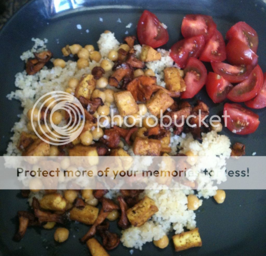 Couscous, tofu, kantareller, kikärtor och tomat. DYRT ATT VARA VEGAN :SSSsss